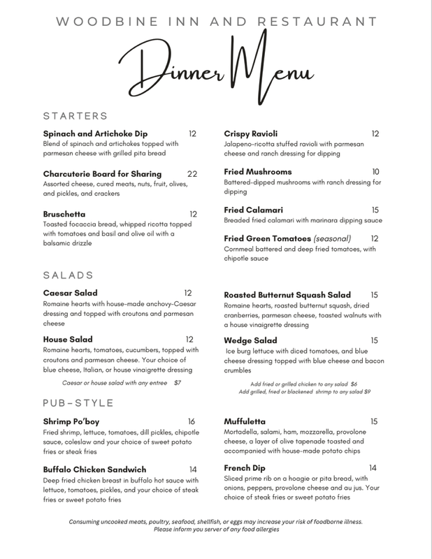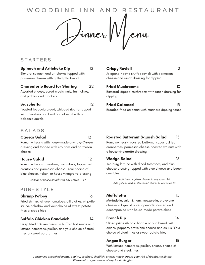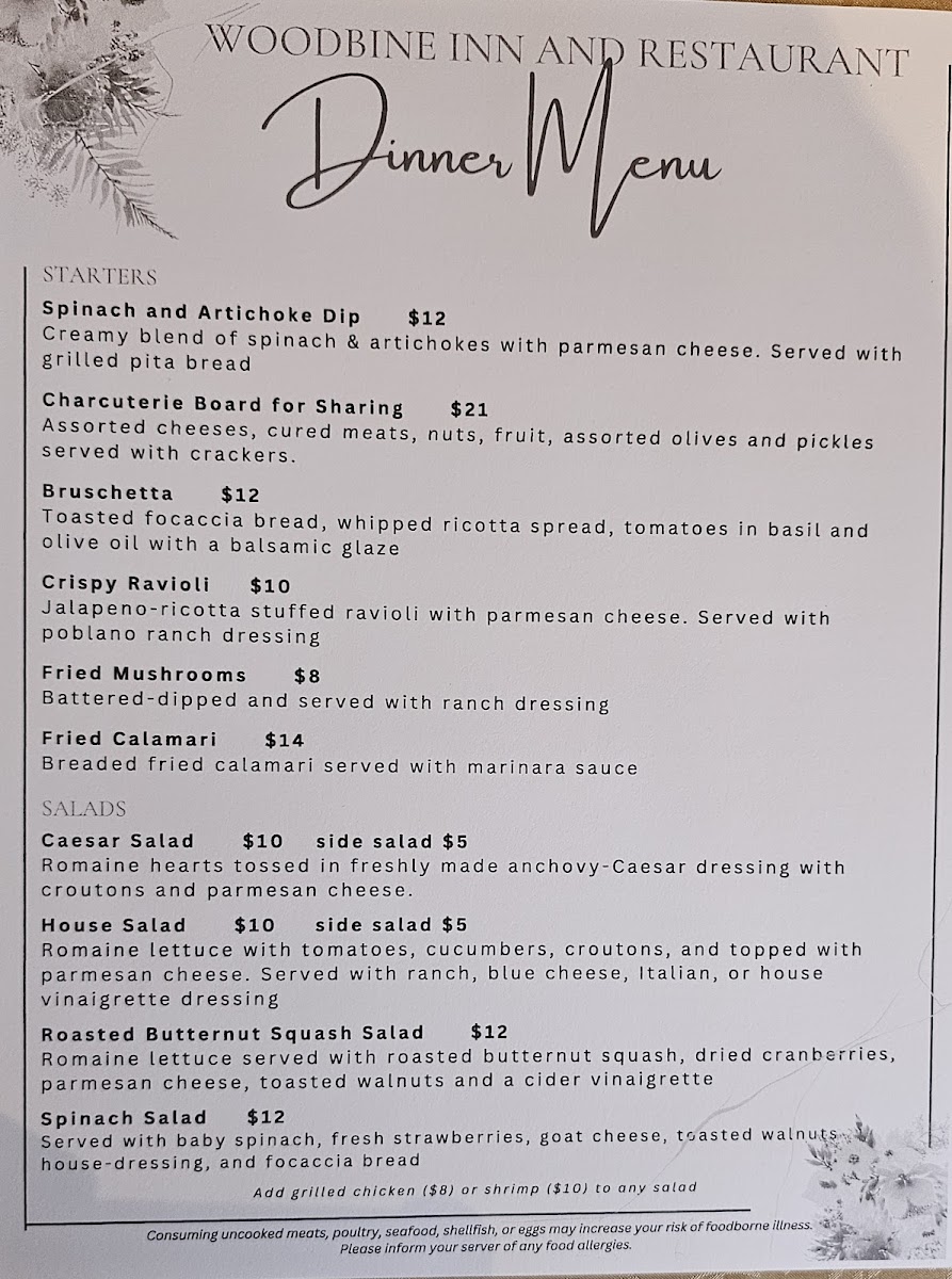 Welcome to Woodbine Inn and Restaurant, a hidden gem nestled in Madisonville, Texas. This charming establishment offers a delightful fusion of flavors that caters to various palates. Start your culinary journey with the Spinach and Artichoke Dip or the delightful Charcuterie Board, perfect for sharing. For salad lovers, the Roasted Butternut Squash Salad and classic Caesar are must-tries.